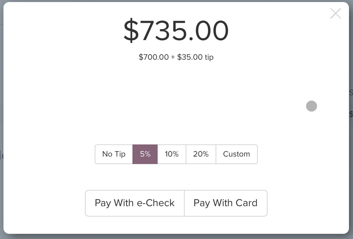 Dubsado allows you to enable a gratuity feature on your invoices, so you can collect tips from clients. It’s a super simple feature and clients are able to choose to or not to add a tip before paying their invoice. While you may not use gratuity for your business, there may come a time when a client wants to reward you simply for being awesome! Instead of having the potentially-awkward conversation of how much extra you should apply to their invoice, they can simply enter the amount and pay on their own.