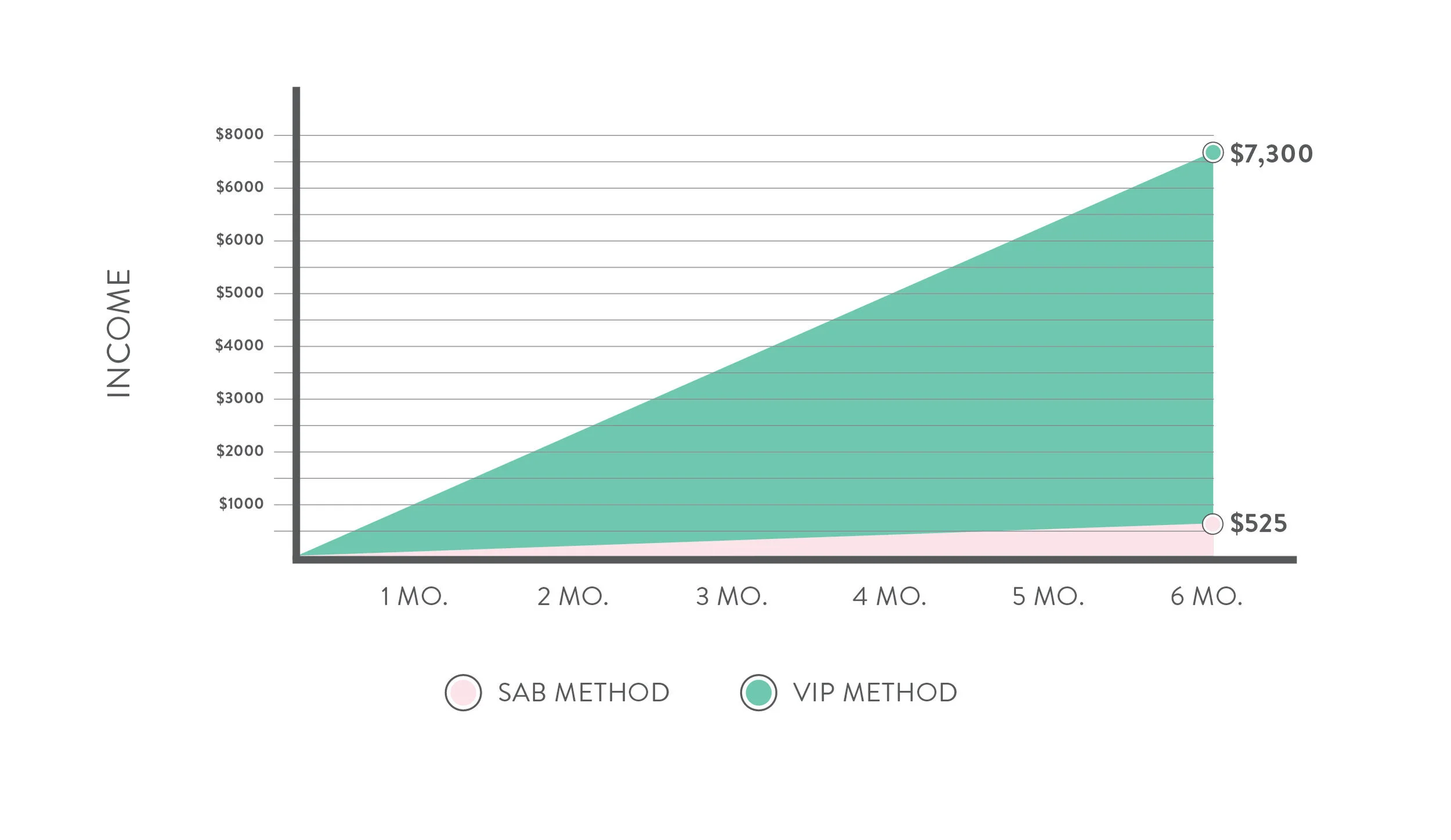 Here, look at the difference of my own business using the SAB Method and the VIP Method: