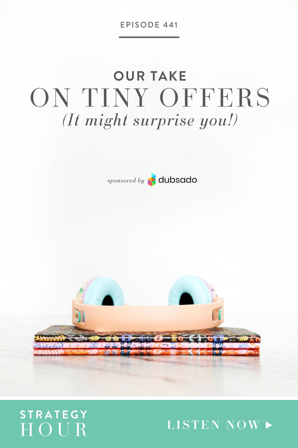 We made a tiny offer before tiny offers were a thing, and now people ask us about it all the time since it became the cool thing to do. This is what we’re talking about in this episode. We’re walking you through whether or not a tiny offer makes sense for your business right now. The pros, the cons, the whole shebang. But take note: these are just our opinions and experiences; you might not agree with them. Still, there is always something new to learn. Grab your go-to Strategy Hour drink and let’s go!
