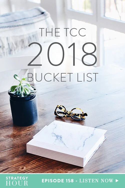 Today, we are going over our 2018 TCC bucket list. Yep, that’s right. We are confirming our 2018 dreams it into the world so you can hopefully be inspired and hold us accountable to make it happen! This is part of our affirming process, creating a vision for what is to come. After this episode, we want to challenge you to go and write down the things your heart desires for 2018.